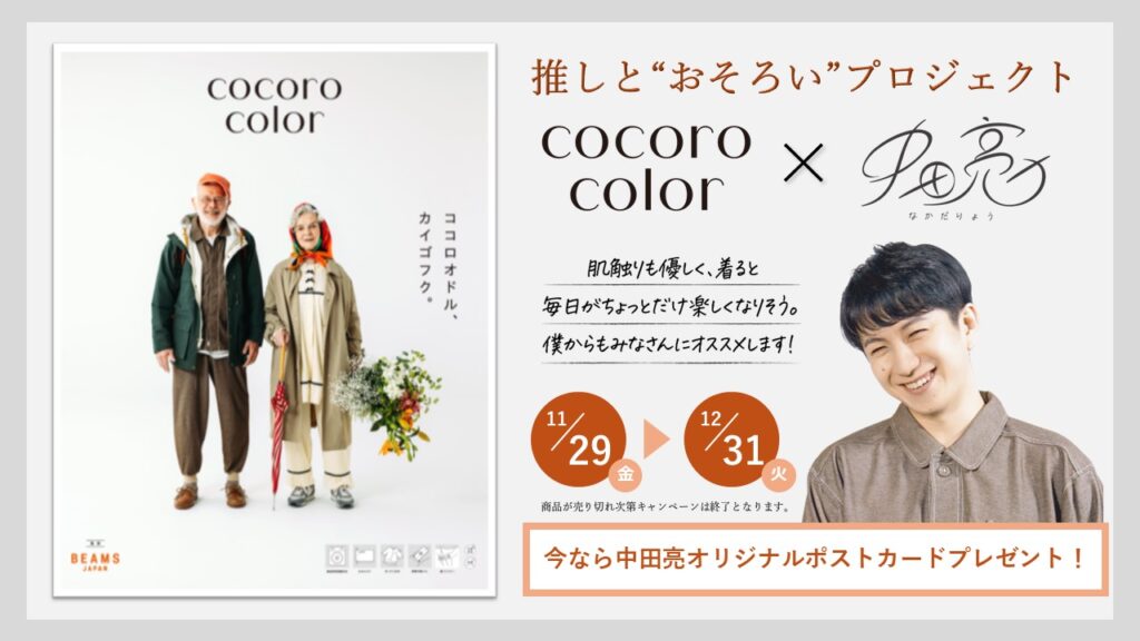 推しと“おそろい”プロジェクト cocoro color(BEAMS JAPAN 監修) × 中田亮コラボキャンペーン
