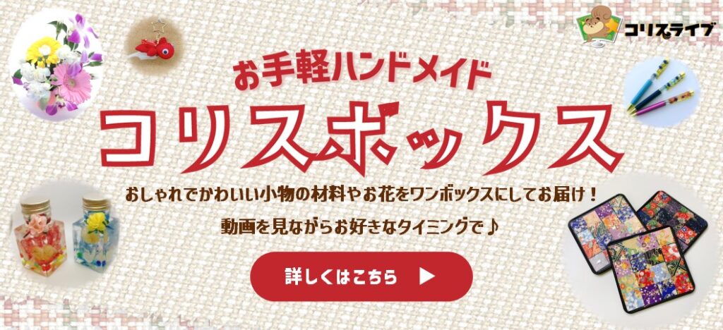 簡単お手頃なハンドメイド材料がワンボックスで届く、「コリスボックス」の5月新作を公開しました! 火を使わないアロマキャンドル「アロマワックスバー」ワックスを溶かし花材を乗せて固める簡単工程です♪アロマオイルをたらすと香りも楽しめます☆ 注文... -